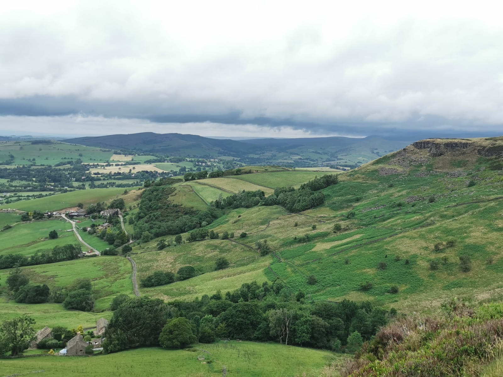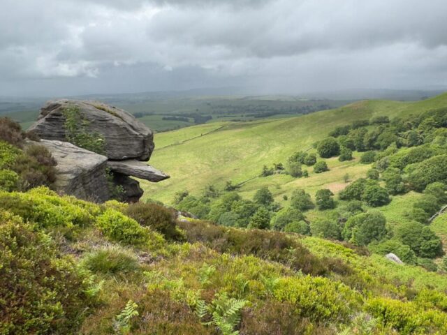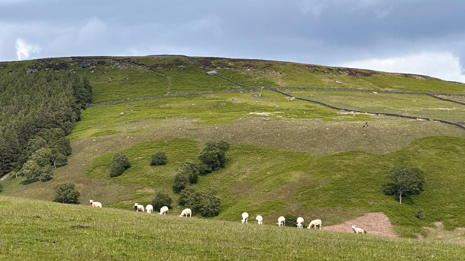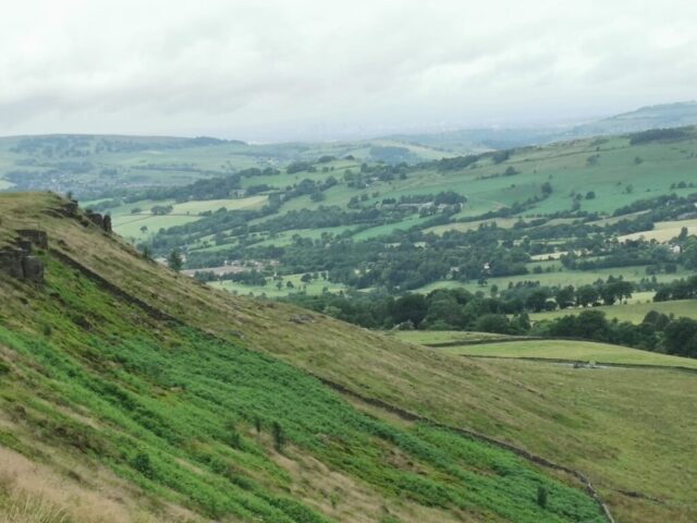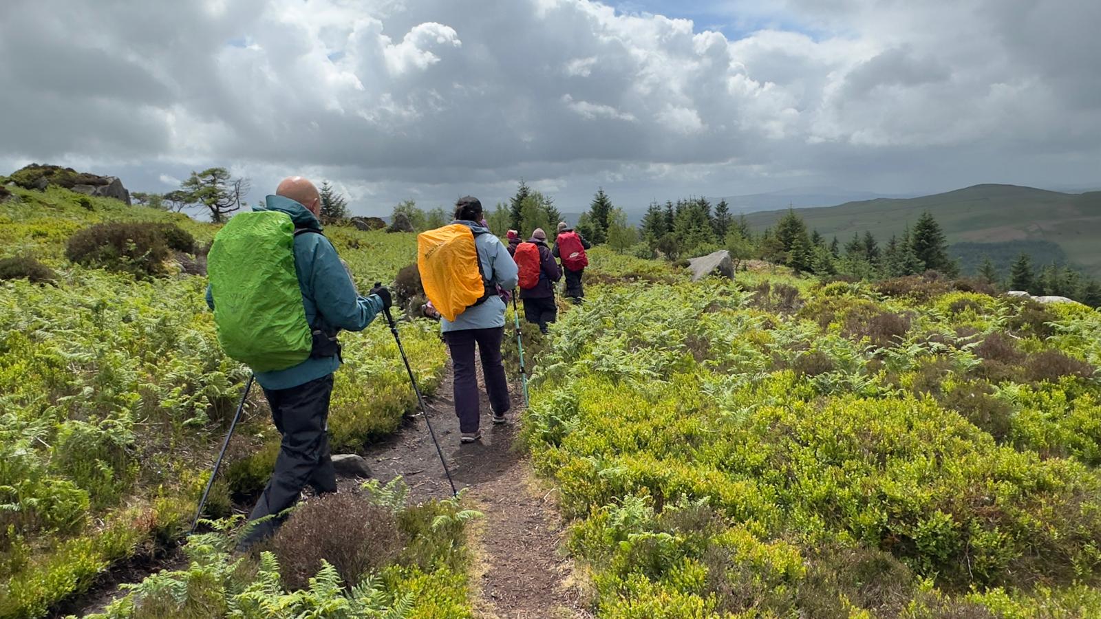 There was a famous mass trespass of Kinder scout in the 1930s, followed by another mass trespass of Morley walking club on Sunday…9 walkers travelled to the dark peak area on a sunny and warm day to complete the historical Kinder Trespass route of the 1930s- we ascended Kinder Scout with excellent long range views of countryside, Manchester City skyline in the distance with passing planes overhead which we could follow each then landing at Manchester Airport.After a lunch stop perched on the edge of the top, we continued along the ridge before descending-initially quite steep followed by meadow paths then a final short riverside stretch rewarded by an ice cream stop at the end