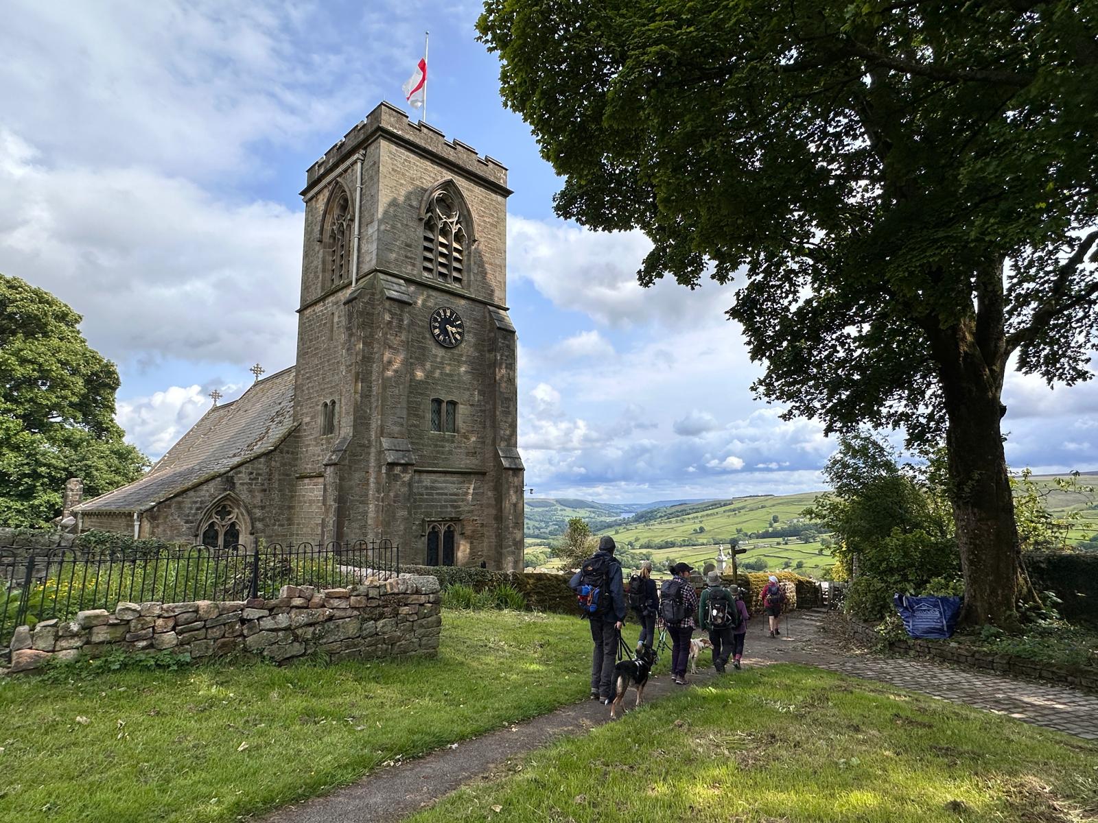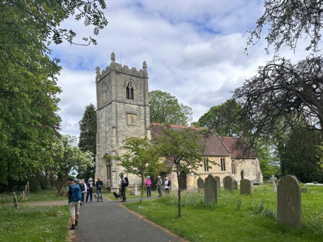 15 walkers and 2 dogs enjoyed a very pleasant and sunny 8 mile walk taking in views of Hazelwood Castle, Towton battlefield and Lead Church finishing with a well earned drink at the Crooked Billet pub.