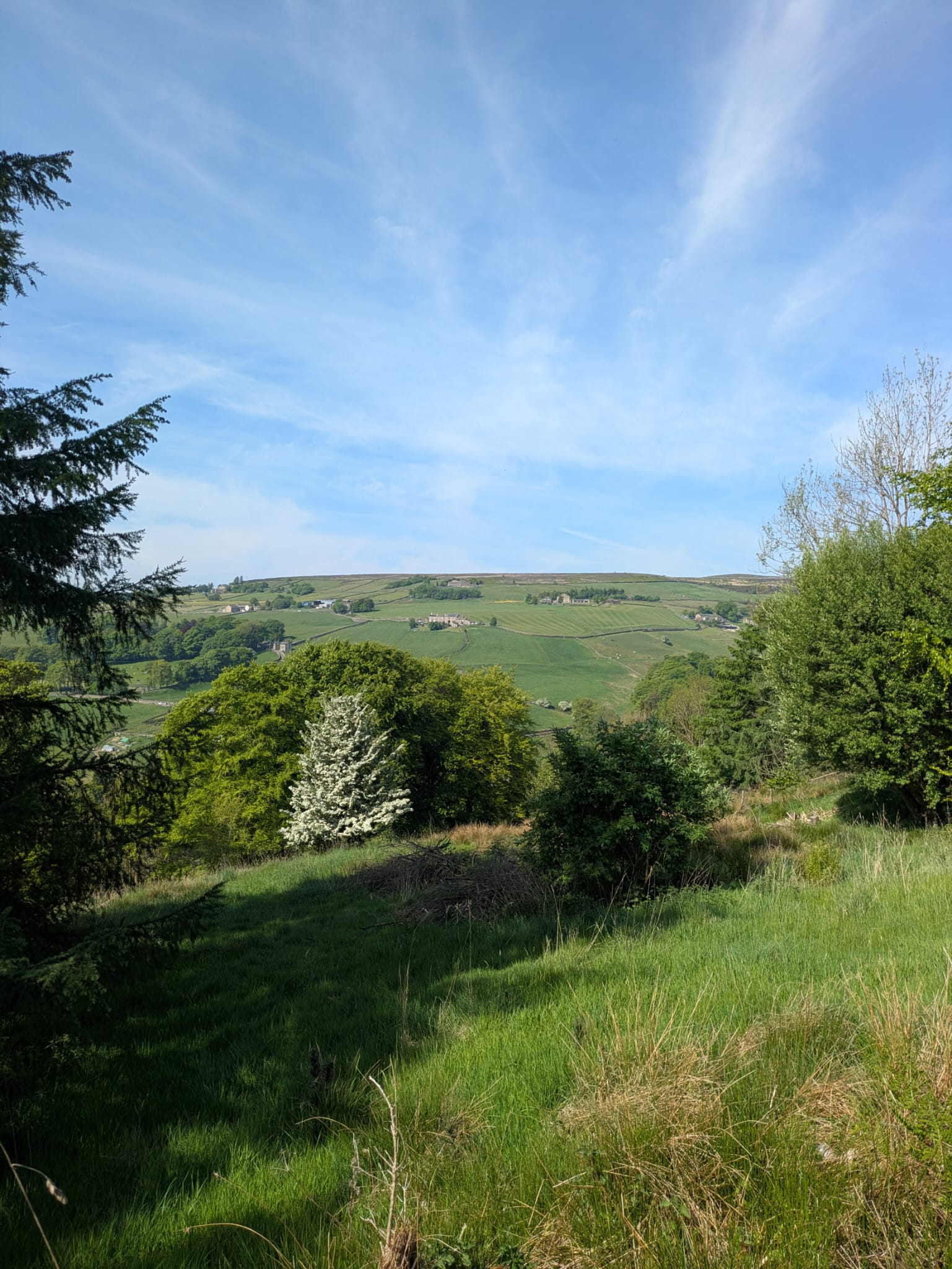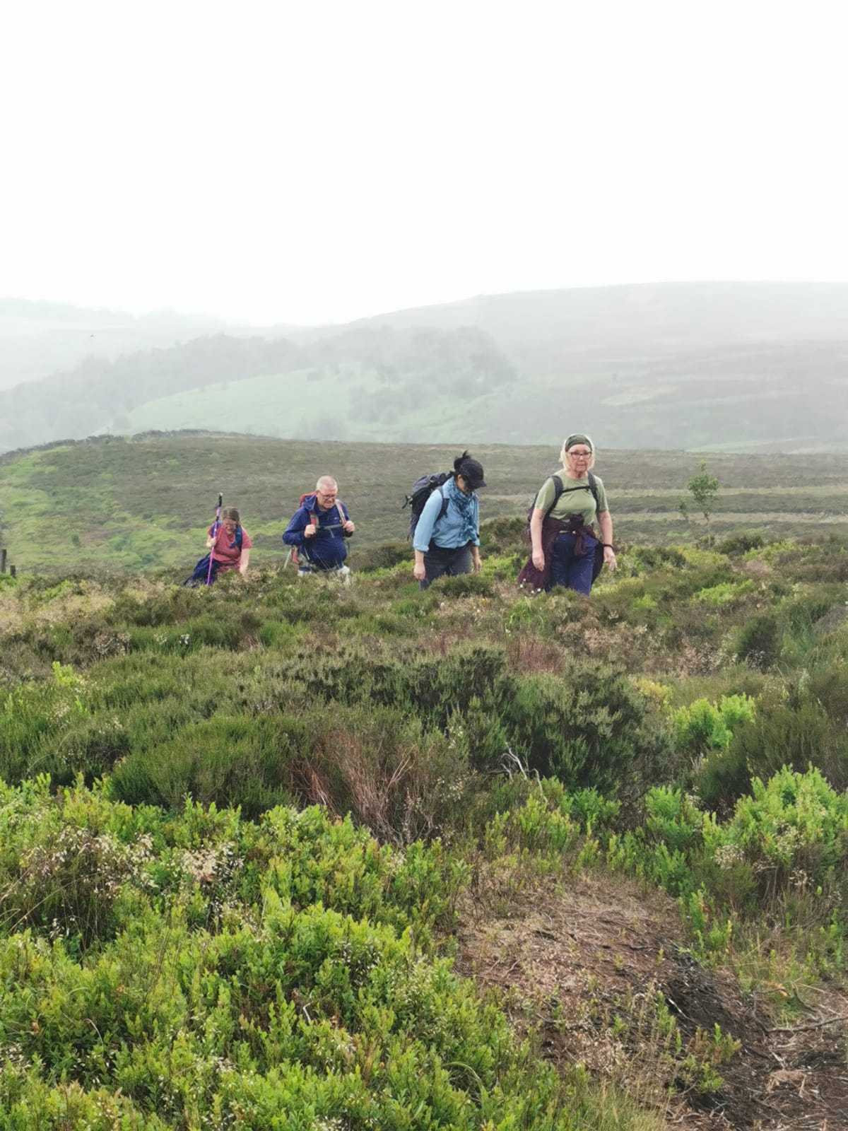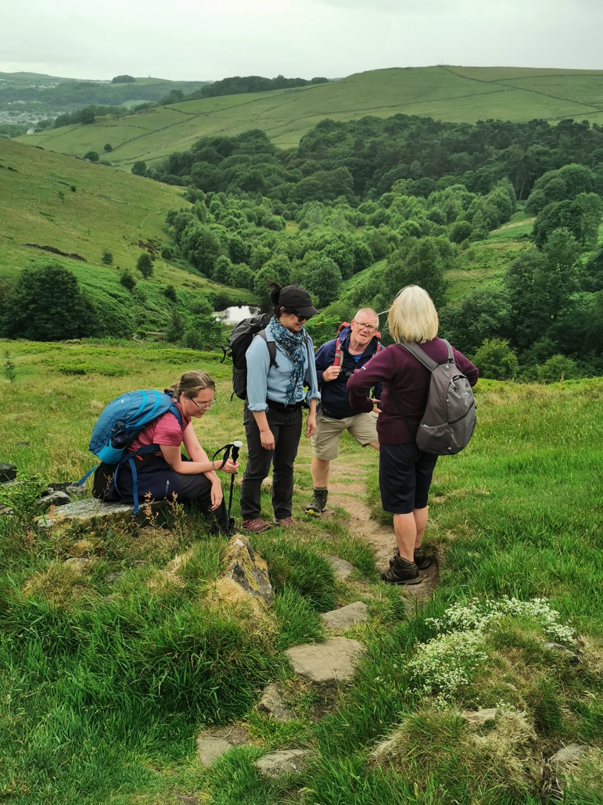 Only 4 walkers undertook a walk across moors above Luddenden. Beautiful day, not too hot, lovely green scenery.