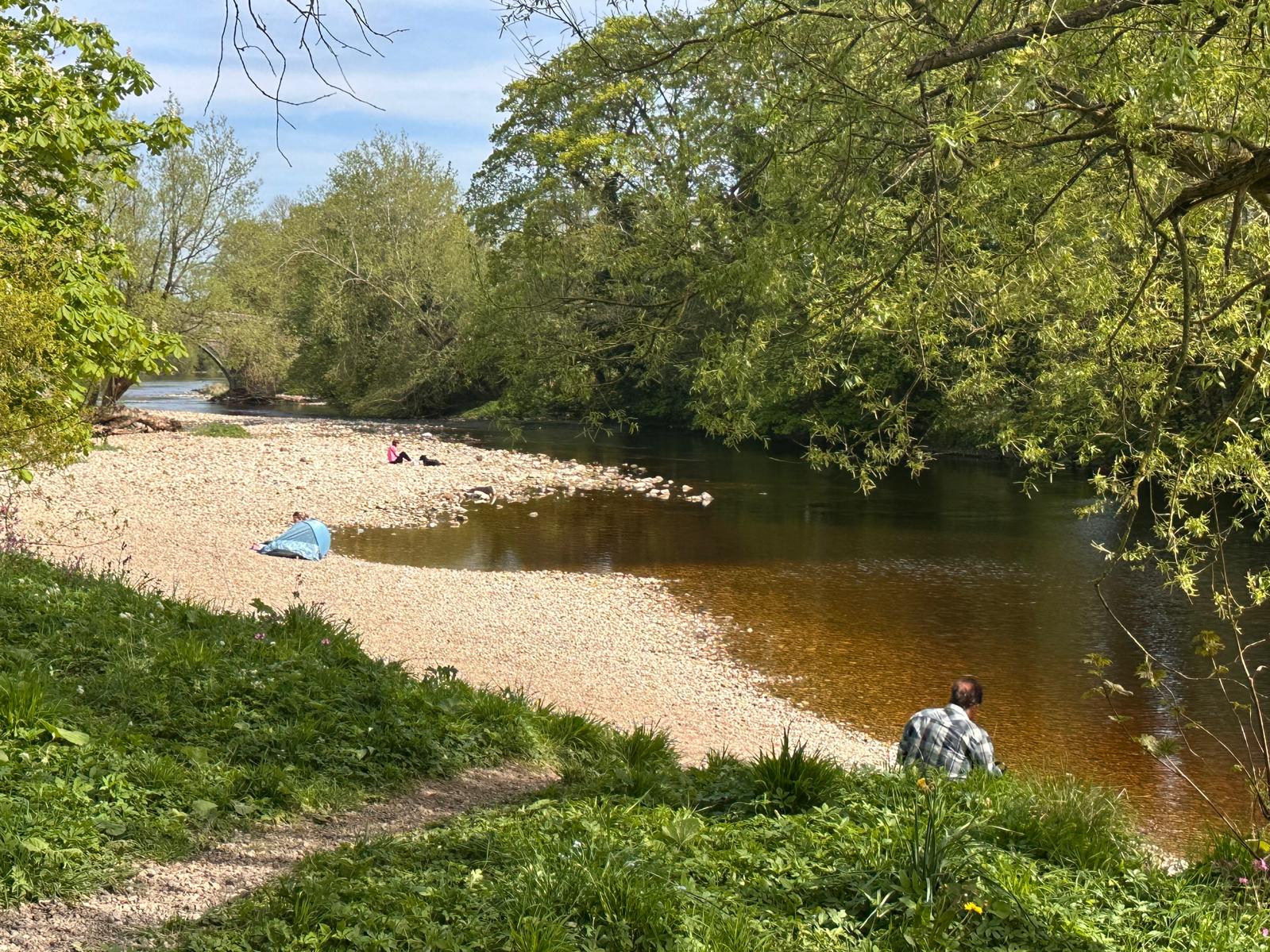 7 walkers travelled to Pateley Bridge to walk an 11 mile circuit of both sides of the dale on a glorious sunny spring day- we had our elevenses at Yorke Folly before descending to cross the river Nidd (first lunch) then climb to Brimham Rocks (ice cream stop)-in the late afternoon a long meander back to Pateley Bridge the final stretch being along Panorama way
