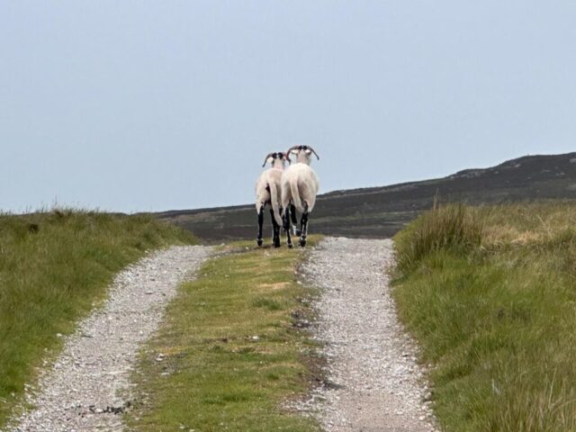 Past sheep that scatter, curlew wail