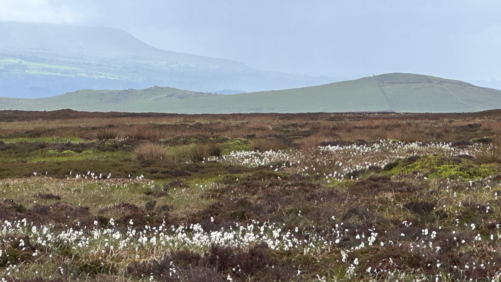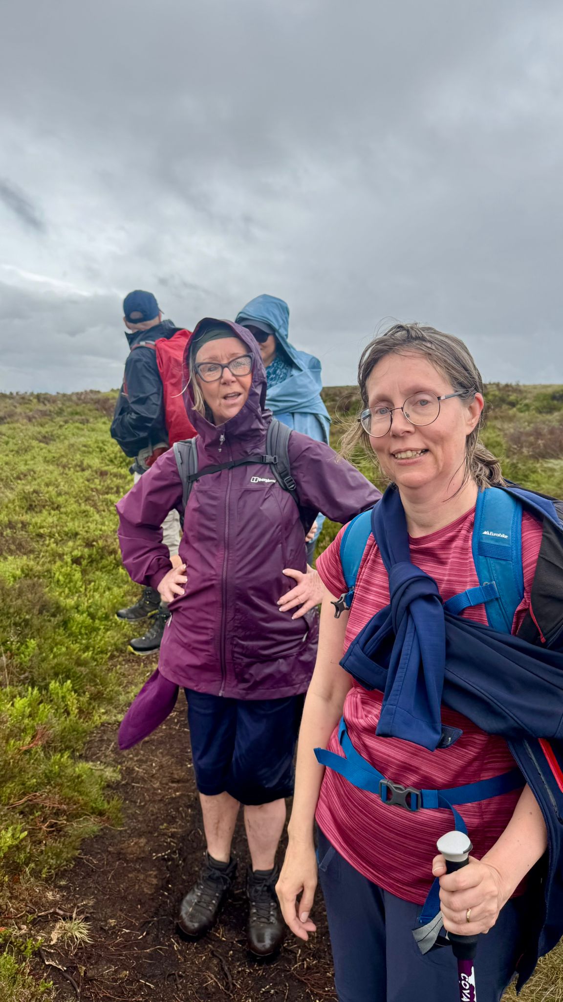 6 walkers enjoyed a 9 mile walk on good terrain with a lot of lovely soft peat tracks -1889 ft ascent-some welcome rain first thing after the recent heatwave , then rather breezy which dried everybody out again-some wonderful views